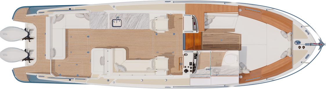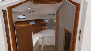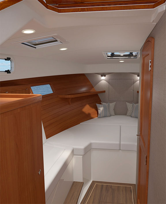 A sense of elegance is not lost when going below. High-Gloss Teak accents and Satin-Finished Cherry add elegance and comfort to every space.