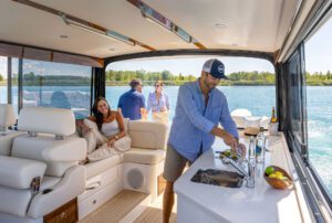 Whether you're hosting a gathering or embarking on day voyage, this all-weather/all-condition performance yacht ensures comfort and adventure for you and your loved ones.