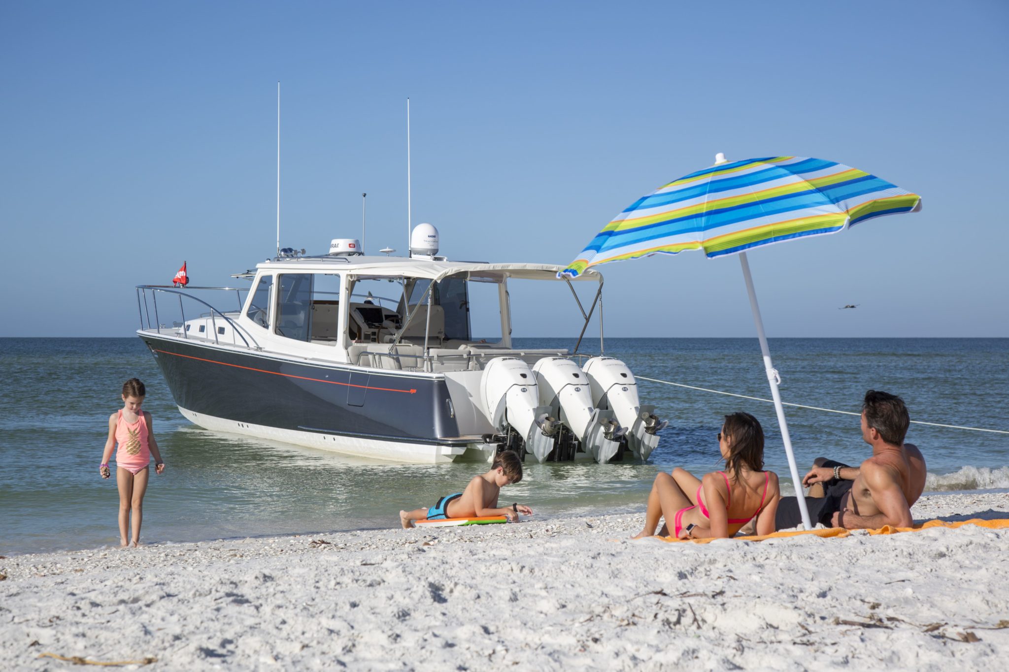 At The Dock With The 50z - When family and friends are aboard, you’ll love the plush seating and the sociable flush deck arrangements that allow your whole group to join the fun. On the bridgedeck, which can be fully enclosed and temperature controlled, or open to the aft deck under a full protective bimini, you can seat 12 with room for… Read More